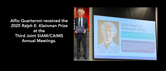Alfio Quarteroni received the 2025 Ralph E. Kleinman Prize at the Third Joint SIAM/CAIMS Annual Meetings. Citation: The 2025 Ralph E. Kleinman Prize is awarded to Alfio Quarteroni for his exceptional contributions to mathematical modelling, scientific computing, computational fluid dynamics, machine learning, profound impact on a wide range of applications, and outstanding […]