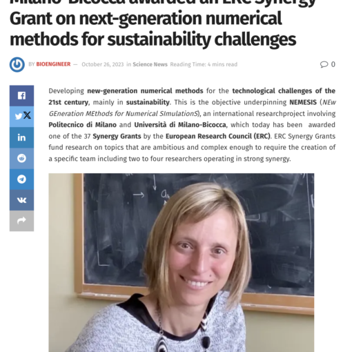 Published October 26, 2023 EurekAlert.org -Politecnico di Milano and Università di Milano-Bicocca awarded an ERC Synergy Grant on next-generation numerical methods for sustainability challenges