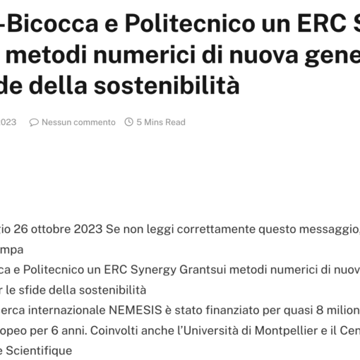 Il progetto NEMESIS -NEw generation MEthods for numerical SImulationS– è stato di recente finanziato nell’ambito dell’ERC Sinergy Grant 2023. Paola Antonietti, professoressa di Analisi Numerica […]